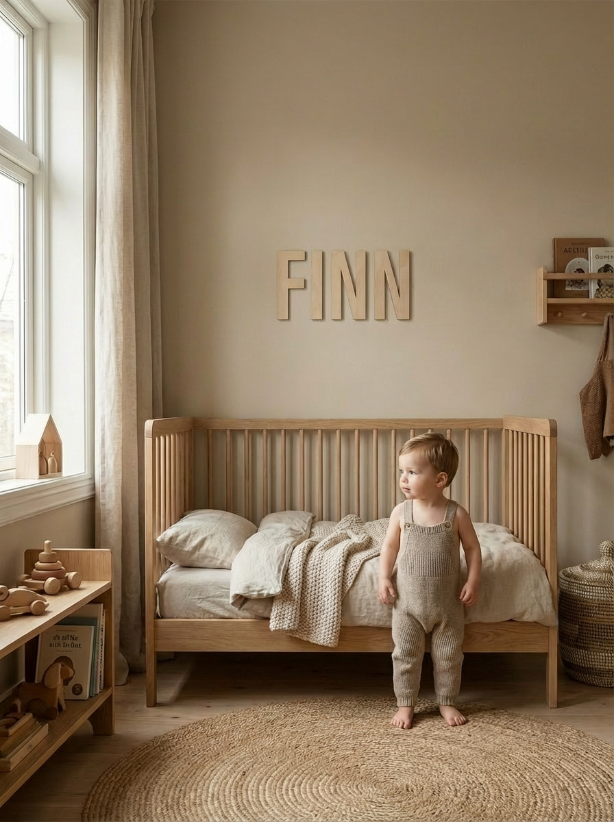 Breng de kinderkamer tot leven met deze houten naamletters. Handgemaakt en met oog voor detail, zijn ze eenvoudig aan een verticale wand te hangen en geven ze een persoonlijke, speelse touch aan de kamer. Een mooie manier om de ruimte van je kleintje uniek en vol karakter te maken.